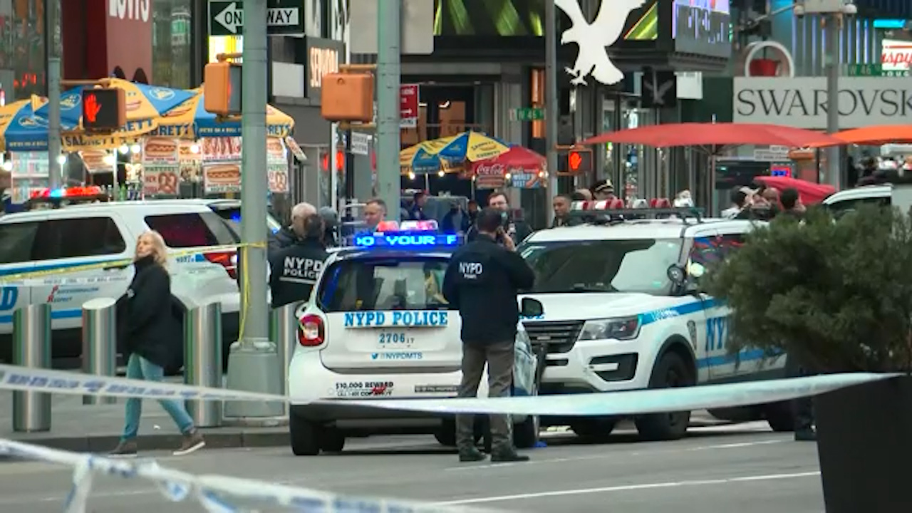 New York police are hunting for a gunman after three people, including a four-year-old girl, were shot in Times Square.