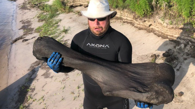 A pair of scuba divers in America found a massive mammoth bone in a river which they reckon is 100,000 years old.