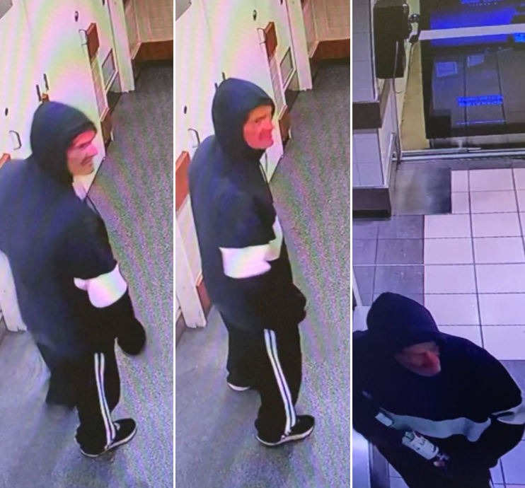 The male offender is described as aged between 40-50 years, caucasian and was wearing black and white striped hooded jumper, black and white striped pants, black shoes and a black cap.