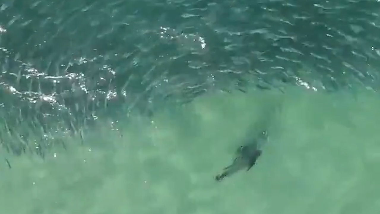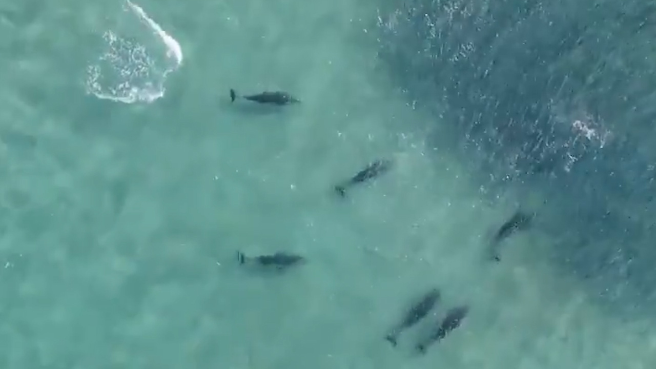 A pod of dolphins were filmed chasing a huge school of fish at Maroubra Beach on Sunday afternoon.
