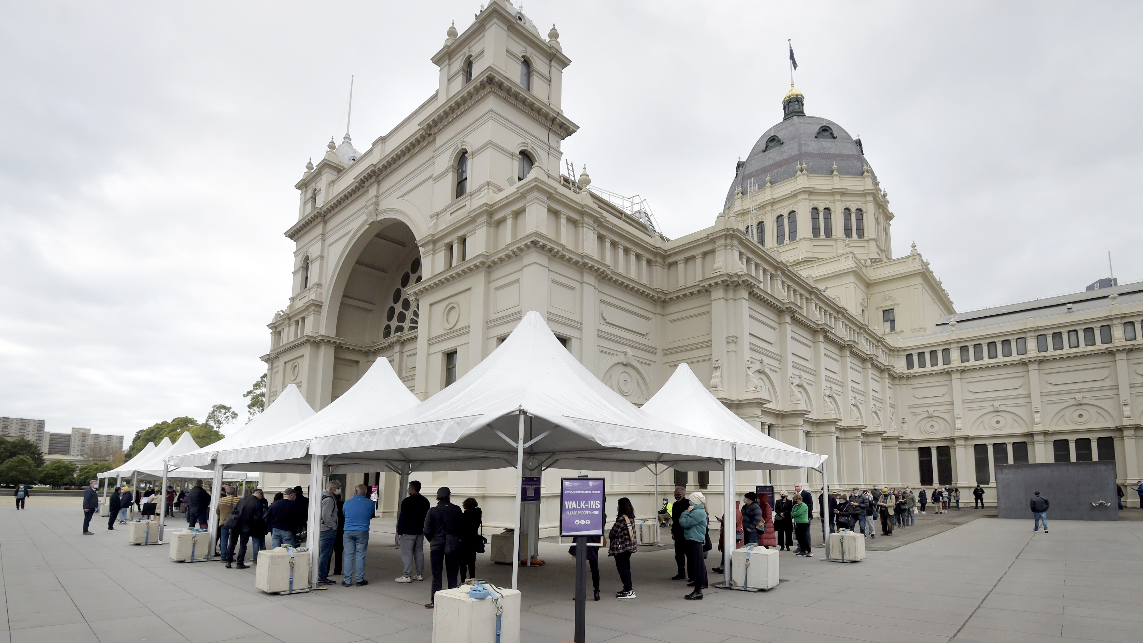 Today there are warnings of "significant delays" at the city's Royal Melbourne Exhibition Centre hub after the system crashed. The Royal Melbourne Hospital told people not to turn up today without a booking.