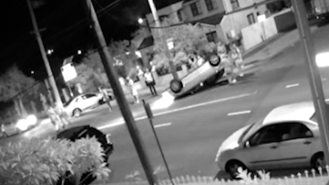 The woman was driving through South Granville in the early hours of this morning when she crashed into a parked car at the intersection of Clyde and Byrnes streets, flipping her Mazda6 onto its roof.