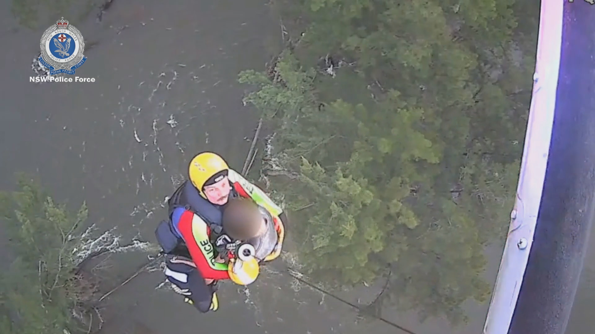 An officer was lowered to her and she was winched to safety.