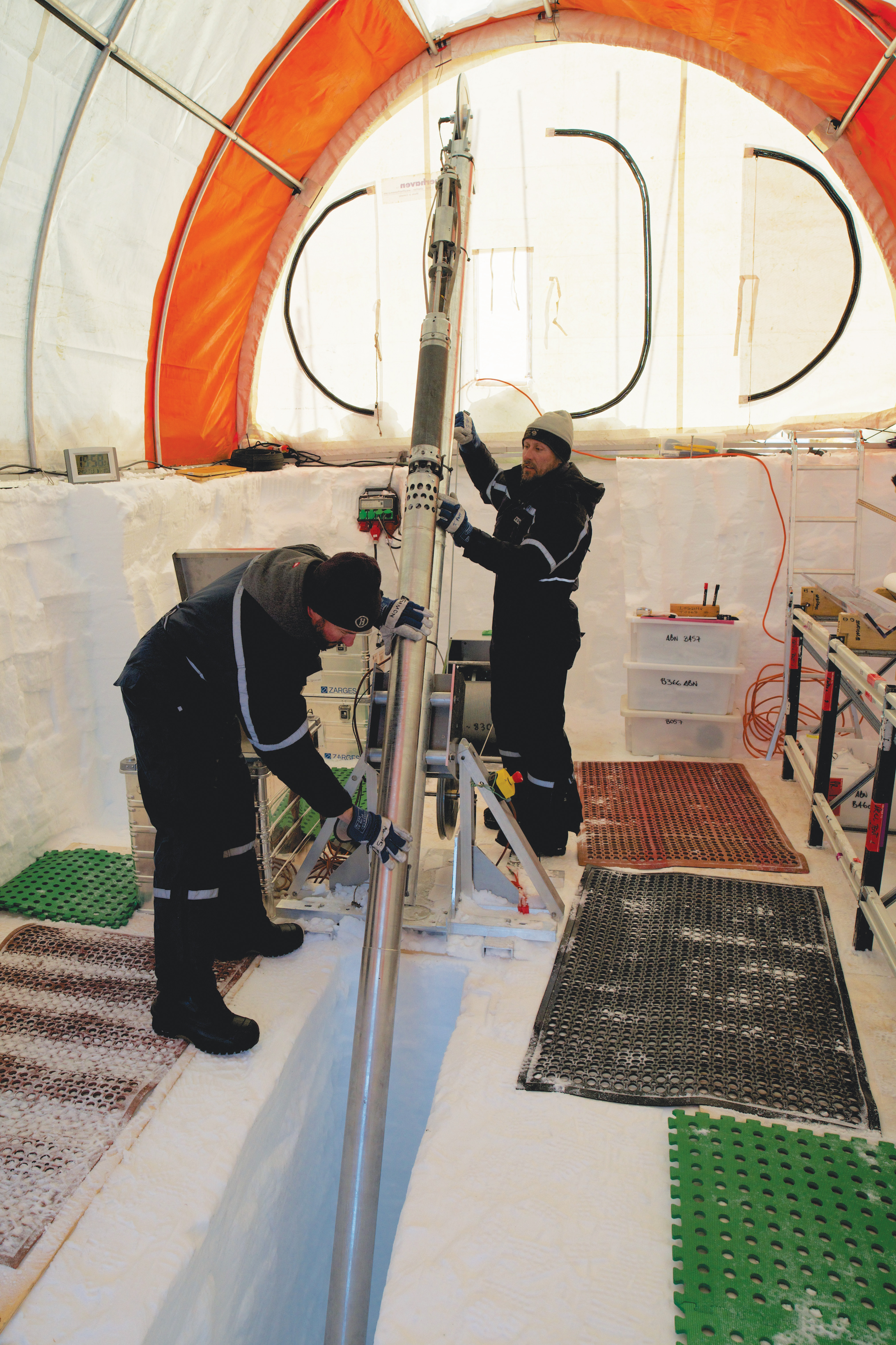 The 10-metre-long stainless-steel drill head was designed and built by Australian Antarctic Division engineers in Tasmania over the last two years.