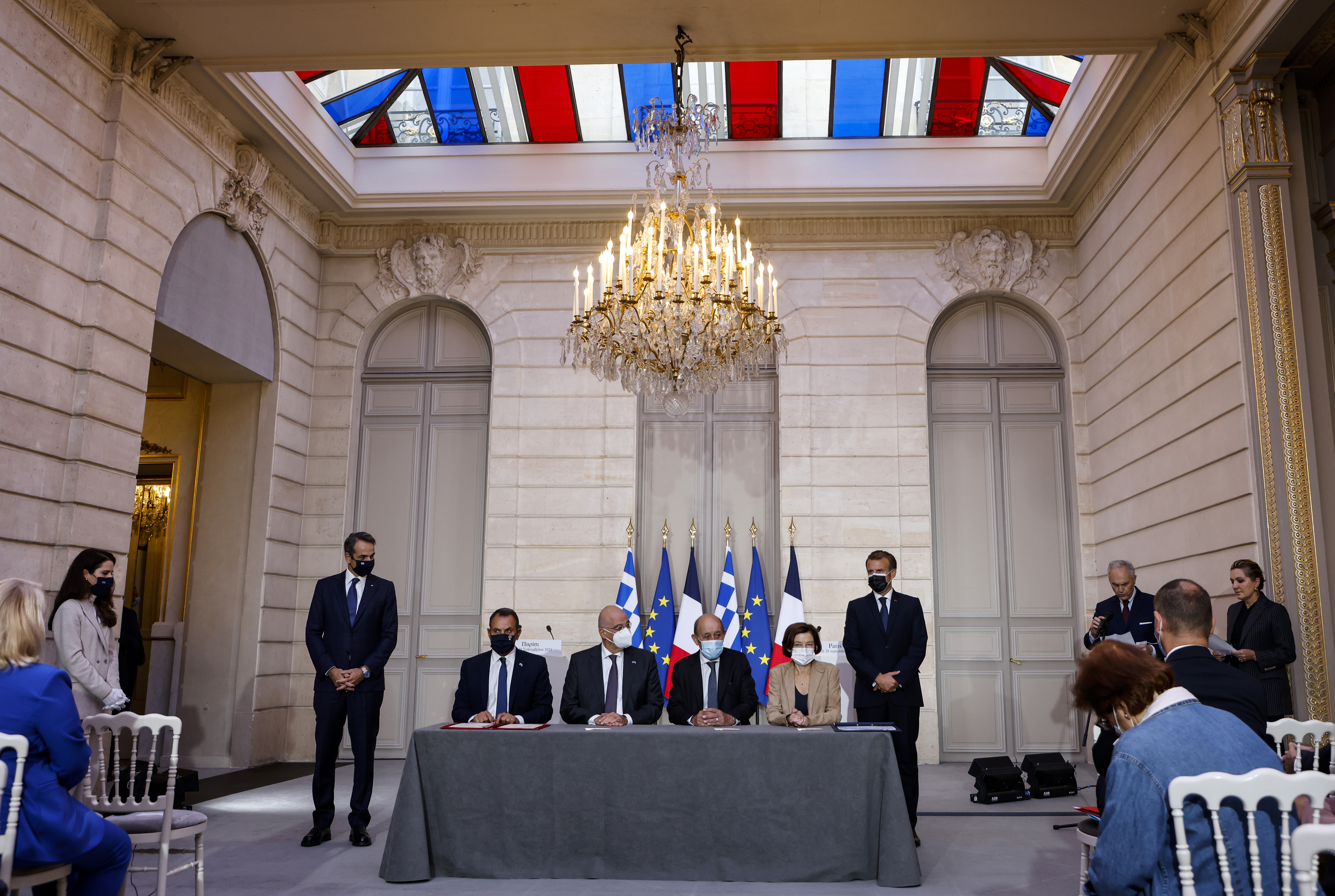 The new arrangement includes Athens' decision to buy three French warships as part of a strategy to boost its defence capacities in the Eastern Mediterranean amid recurring tensions with longtime foe Turkey.