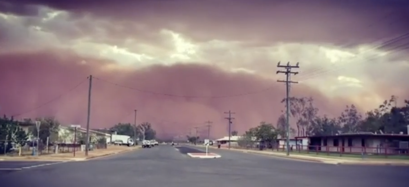 Wind gusts peaking at 93 kilometres per hour tore through the regional town of Thargomindah yesterday evening, bringing with it giant clouds of earthy red dust.