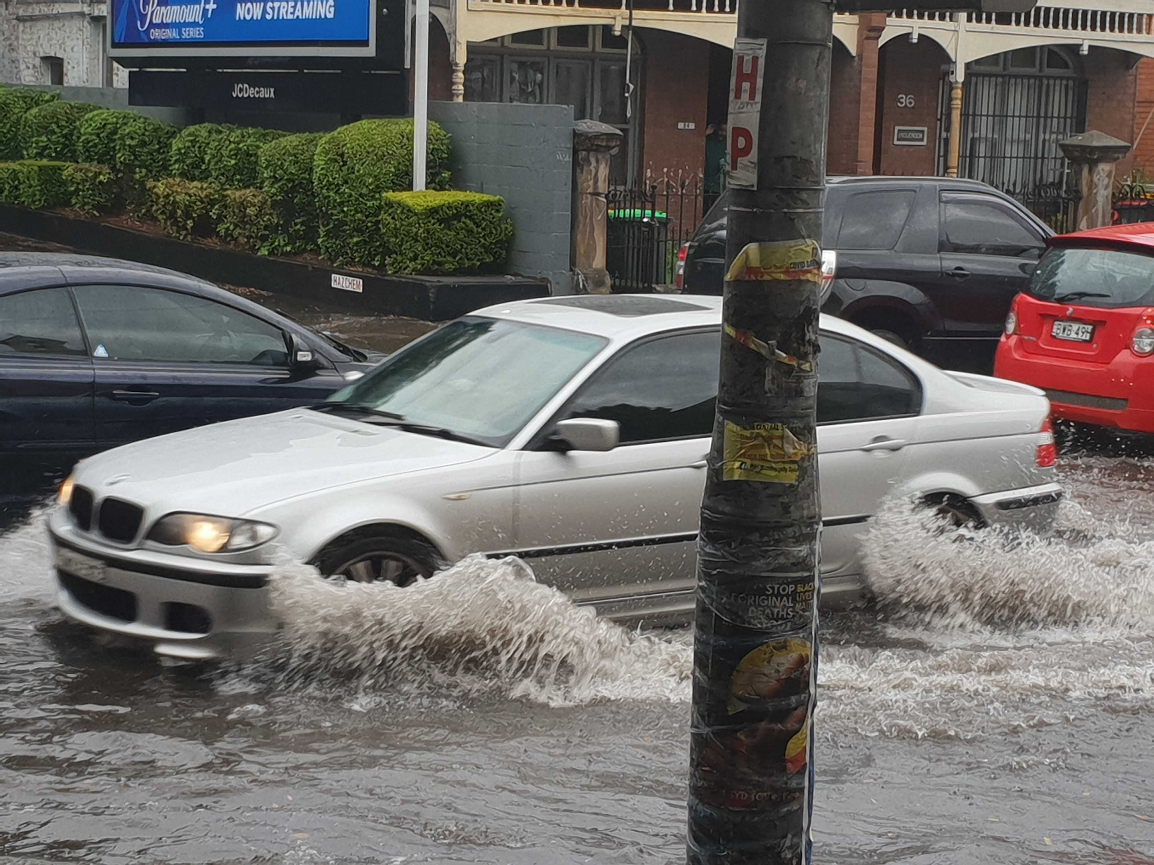 A sudden storm in Sydney yesterday saw roads inundated, with cars driving through heavy water in Enmore.