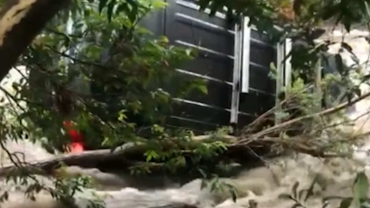 The car was carried 200 metres downstream where it became wedged on rocks in the middle of the flooded creek.