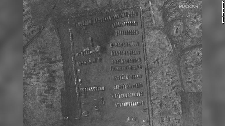 Satellite imagery has shown Russian hardware - including self-propelled guns, battle tanks and infantry fighting vehicles - on the move at a training ground roughly 300 kilometres from the border.