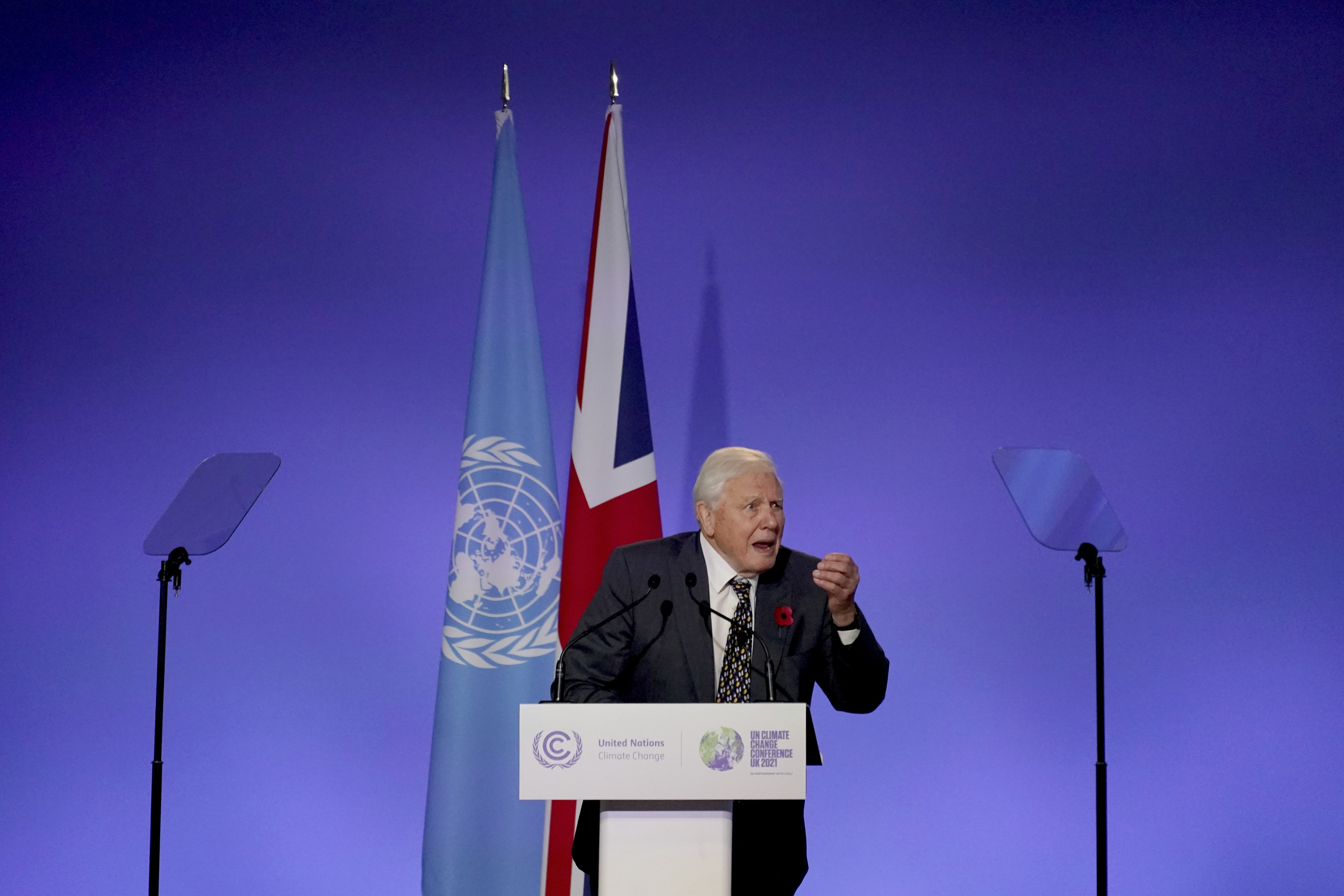 The broadcaster warned against short-sightedness, asking leaders how they might explain to a child that "the smartest species" on the planet failed to see the bigger picture "in pursuit of short-term goals."