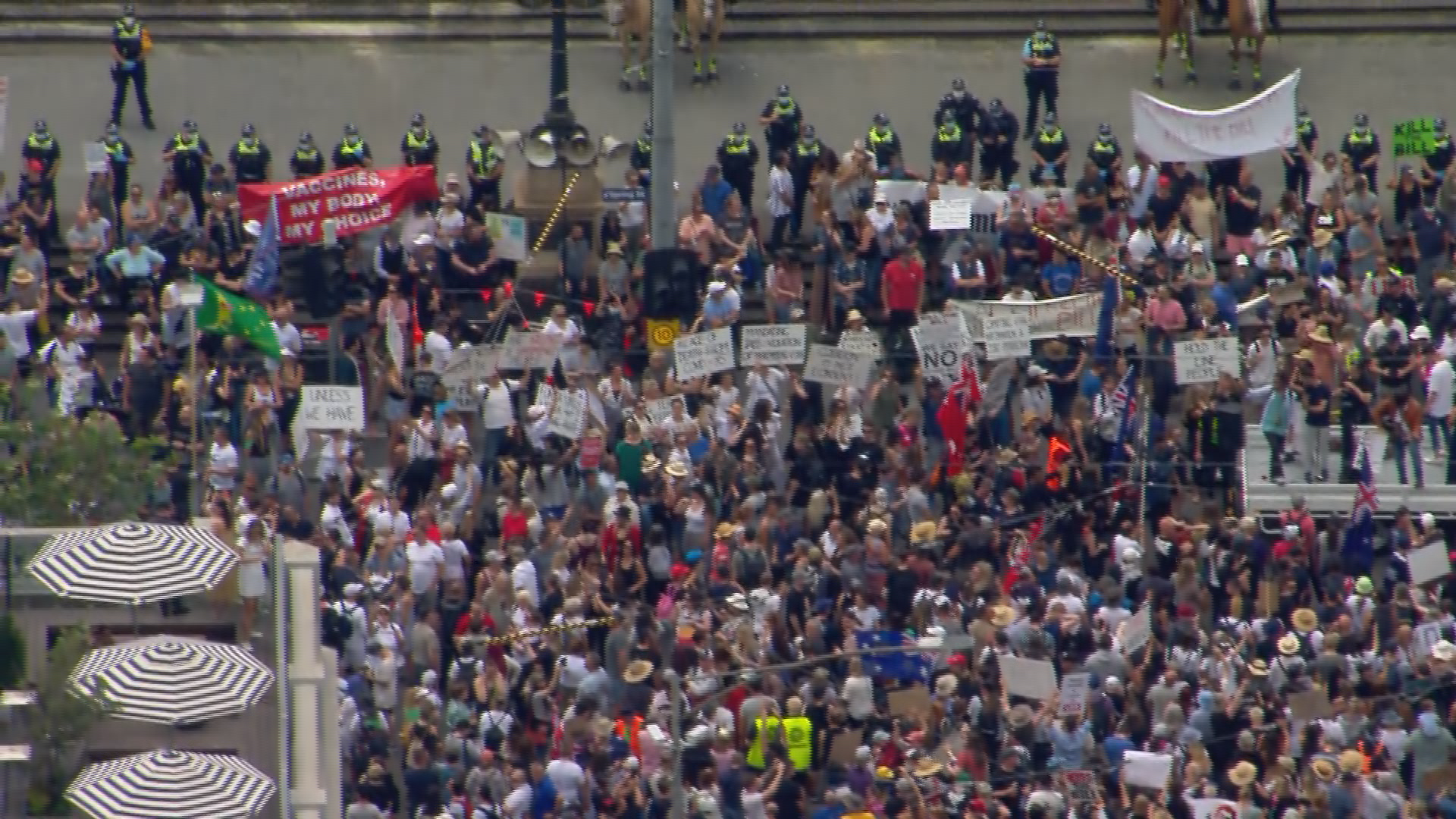 Protesters yesterday shouted "free Victoria" and "sack Dan Andrews" as they marched.