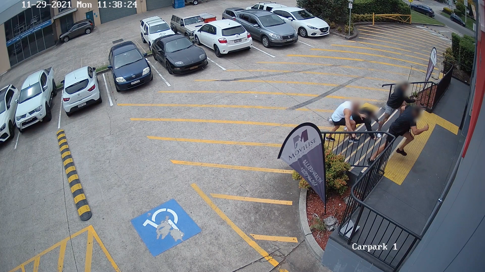 Police are desperate to find a grey Mazda sedan shown in the footage. They were told that's where the shots were fired from before the driver fled the carpark and the car was found set alight shortly after.